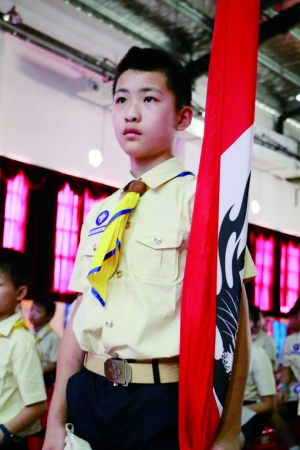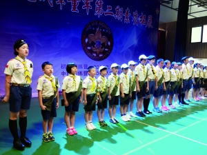 在27号上午举行的闭营仪式上,各分队童军现场展示了团歌、团队口号、步操队列、紧急救护、搭帐篷、传杯子等童军经典项目,在家长们面前展示了童军风采。谷真等27名同学以出色的表现光荣晋升为一杠小队长和二杠中队长。