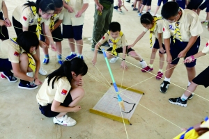 收集竹子、宽胶带、水弹……简短的开营典礼结束后,四个小分队的童军便紧锣密鼓地为下午的先锋工程项目做准备了。