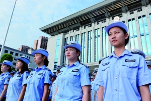 近日,雁峰区城管局开展为期1个月的夏季轮训,城管队员们每天早6点半至9点在雁峰区政府大院开启“军事化训练”模式。此次夏季轮训主要内容包括队列训练、队容风纪规范、文明执法等。■本报记者 唐翔 摄