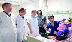 本报讯(通讯员 许敏 殷君发)近日,市中心医院肝胆外科收治了一位“特殊患者”——在衡留学的巴基斯坦籍学员布拉(音译),因外伤急诊入院,生命垂危之际,医院紧急启动“绿色通道”,及时挽救了他的生命。“我会把这份爱带回祖国,让‘仁济精神’在巴基斯坦共和国生根发芽!” 8月8日下午,康复中的布拉对市中心医院的李珍发博士深情说道。