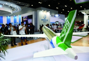 9月19日,参观者在拍摄C919飞机模型。 ■新华社发