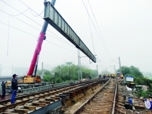 9月23日,中铁九局七公司衡阳项目部承建的滨江新区工程耒水北路16米框构桥顺利顶进完成。16米框构桥下穿京广铁路下行线,施工难度较大,风险级别较高。京广铁路线列车流量较大,平均每天通过列车100余次,为保证列车正常运行,本次施工首先采用工字钢横纵梁及D型便梁对铁路进行架空,然后用千斤顶将已经预制完成的16米框构桥逐渐顶进。16米框构桥顶进施工于9月1日开始,期间经历了线路加固完成、车行道顶进完成、左右两侧人行道顶进完成三个主要节点,为最后京广铁路线路恢复节点完成奠定了基础。