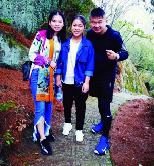 陈芳(左)和谭楚(右)带曾冰茹爬南岳衡山