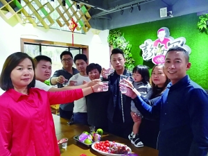 10月4日,彭海军鱼粉店“掌柜”彭海军从广州风尘仆仆赶回衡阳,与店内员工一起过中秋节。