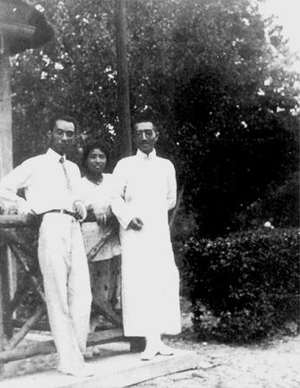 任鸿隽、陈衡哲订婚日与胡适的合影
