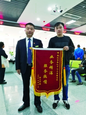 10月26日,市不动产登记中心窗口前,市民小唐激动的将一面印有“业务精湛、服务热情”的锦旗连同一封感谢信赠与交易服务科,锦旗上虽仅寥寥数语,但却是对不动产登记中心服务工作最为肯定的褒奖。