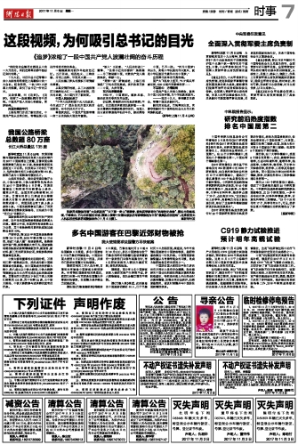 2017年11月06日 星期一 出版 返回首页 | 版面概览 | 版面导航 | 标题导航