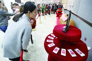 12月6日下午,由衡阳日报社和市文联共同主办的“不纸于此”谭琴纸艺展在市博物馆开幕,百余幅精美剪纸艺术品让现场观众叹为观“纸”。图为纸艺展上创意作品吸引了不少年轻人的注意。■罗盟 摄