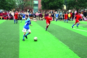 缤纷多彩的“入场式”后,孩子们还进行了武术操表演、舞蹈表演。接下来的班级足球赛,则让孩子们过足了球瘾,每个孩子都成了最闪亮的足球明星。