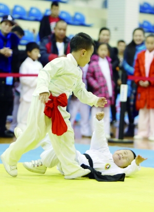 衡东县委副书记、县长徐志毅介绍,随着武术在衡东的不断发展,校园武术也“忽如一夜春风来,千树万树梨花开”。2014年,全省开展校园武术段位制推广试点工作,衡东被列入全省首批10个试点县。育星小学、前进完小、楚天中学等10所学校被列为推广试点学校。2015年4月,衡东校园武术段位制推广正式启动。去年该县被评为“湖南省校园武术段位制推广先进单位”。据悉,衡东县首届武林大会自12月5日正式启动,已开展了武术进校园交流巡演活动。