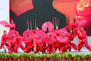 15日上午,数千人欢聚在衡东县城杨山脚下、氵米 水河畔共同观赏“帅乡武魂”大展演,此次大展演分为三大篇章——红色热土、衡岳雄风、伟大梦想,演绎了南岳衡山派武术豪迈的前世今生。