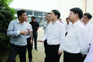衡山县委书记尹培国(右二),县委副书记、县长蒋青(右一)在新金龙调研企业联手帮扶情况