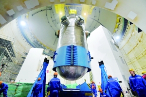 这是福清核电5号机组反应堆压力容器抱环拆解现场(1月28日摄)。1月28日17时左右,“华龙一号”全球首堆、中核集团福清核电5号机组反应堆压力容器顺利吊装入堆。该设备是我国首个具有完全自主知识产权的三代核电工程压力容器,此次顺利吊装将为“华龙一号”机组的后续安装工作开展创造良好条件。■新华社发