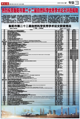 热烈祝贺衡阳市第二十二届自然科学优秀学术论文评选揭晓