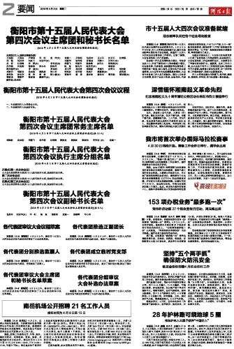 衡阳市第十五届人民代表大会 第四次会议主席团和秘书长名单