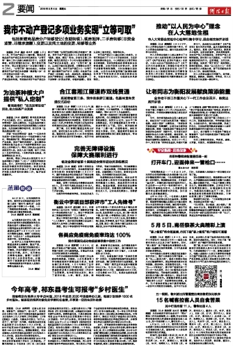 衡阳日报 版面二 A02 2018-05-041 2018年05月04日 星期五