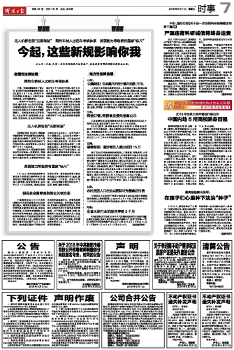 2018年06月01日 星期五 出版 返回首页 | 版面概览 | 版面导航 | 标题导航
