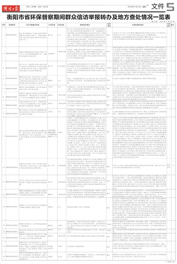 衡阳市省环保督察期间群众信访举报转办及地方查处情况一览表