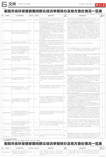 衡阳市省环保督察期间群众信访举报转办及地方查处情况一览表