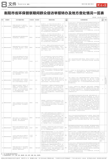 衡阳市省环保督察期间群众信访举报转办及地方查处情况一览表