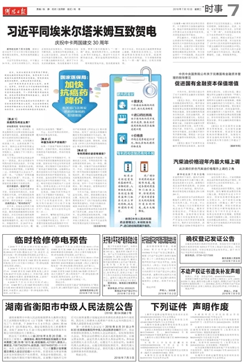 衡阳日报 版面七 A07 2018-07-101 2018年07月10日 星期二