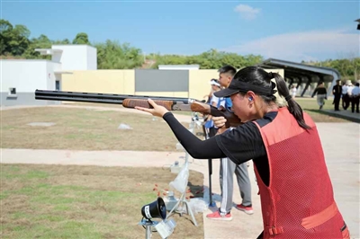 近日,记者在衡南县云集车江片区衡阳梦东方旅游度假区里飞碟靶场看到,工作人员与运动员正在进行首次调试射击。据了解,衡阳市飞碟靶场场馆是湖南省目前最先进的飞碟靶场,可承办国际级单项体育赛事,总用地面积约50240平方米,总建筑面积约1960平方米,其中地上建筑面积约1132平方米,设计建设综合楼1座及5个飞碟靶房,配套设置小车停车位119个,大巴车停车位9个,主楼观礼台可同时容纳200多位观众观看比赛。