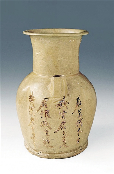 唐长沙窑青釉褐彩“君生我未生”诗词壶