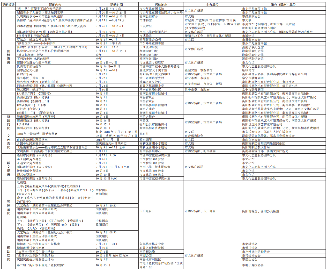 ~~~——中秋、国庆、重阳期间群众文化体育艺术活动安排