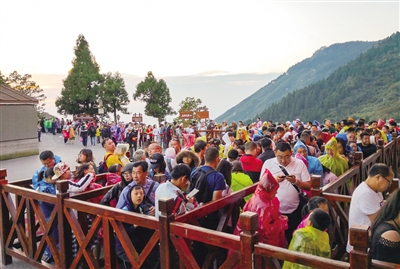 本报讯(通讯员 文兰 记者 刘思远)“十一”黄金周,南岳衡山景区接待游客数61.71万人次,同比增长12.02%。其中10月3日这天迎来客流高峰,共接待游客15.32万人次,同比增长7.26%。除祝融峰、南岳大庙等传统景点游客爆棚外,休闲游、乡村游备受游客青睐。近年来,南岳以创建国家全域旅游示范区为抓手,推动传统祈福游逐渐向休闲体验游转型。
