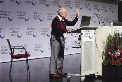 9月24日,在德国海德堡举行的第6届海德堡国际数学与计算机科学获奖者论坛上,迈克尔·阿蒂亚就黎曼猜想发表论述。 ■新华社发
