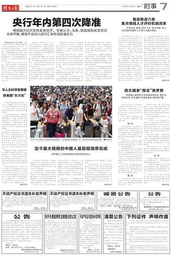 2018年10月08日 星期一 出版 返回首页 | 版面概览 | 版面导航 | 标题导航