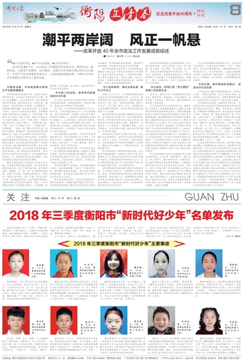 2018年三季度衡阳市“新时代好少年”名单发布