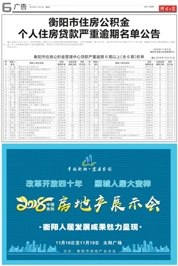 衡阳市住房公积金管理中心贷款严重逾期 6期以上(含6期)名单