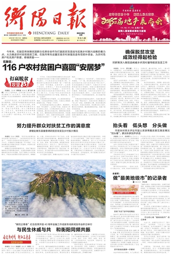 衡阳日报 版面一 A01 2018-11-091 2018年11月09日 星期五