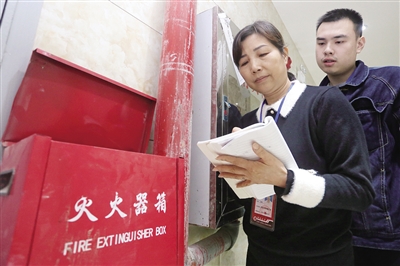 11月14日,高新区华兴街道工作人员在居民小区检查消防设施。据了解,立冬以来,我市各级各部门加大了火灾隐患排查力度,启动了冬季消防大检查,消防检查人员对校园、楼道、房间等展开逐一检查,确保安全措施落到实处。 王 翟 摄