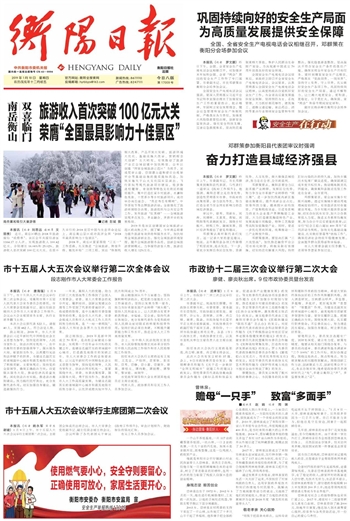 衡阳日报 版面一 A01 2019-01-101 2019年01月10日 星期四