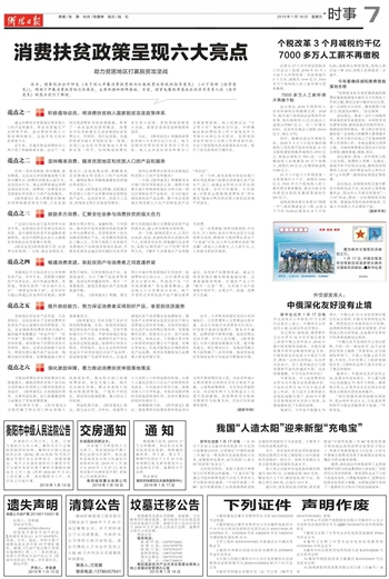 2019年01月18日 星期五 出版 返回首页 | 版面概览 | 版面导航 | 标题导航