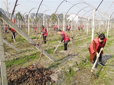 葡萄园里,“红马甲”在辛勤地忙碌。
