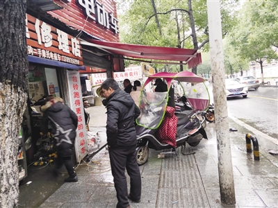 18日下午,记者赶赴现场发现,一家电动车修理店门前摆设了三台电动车,一名修理人员正埋头替上门客户维修车辆,地面上凌乱地摆设着各种管线,将狭长人行道挤占了一大半,过往行人无奈绕走机动车道。附近市民告诉记者,修理店不仅占道修车,有时还将二手电动车的样车摆放在人行道上展示促销,弄得油渍横流,对周边卫生环境带来影响。希望职能部门强化巡查力度,规范店家进店入室经营,还道于民。