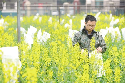3月6日,市农科所油料作物研究室科研人员冒雨抢抓油菜育种。当天,是二十四节气中的惊蛰,预示气候逐渐变暖。科研人员告诉记者,今年受厄尔尼诺现象影响,出现极端异常天气,绵绵不断的雨水给油菜育种工作带来影响。近日,大家天天忙活在田间地头,选择优良株系、给油菜套袋自交、人工去雄杂交,力争抢在3月底油菜花期结束前完成育种工作。 ■记者 王翟 摄