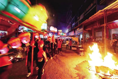 3月13日,农历二月初七,衡阳县界牌镇街头迎来传承600余年的民俗活动——火灯节。傍晚,镇上家家户户都在门前燃起篝火,点燃红烛,挂上大红灯笼等候火灯队伍的到来。夜幕降临后,人们高举火把,数千人上路,旗帜飘扬,锣鼓喧天,祈求一年风调雨顺、国泰民安。 ■记者 罗盟 摄
