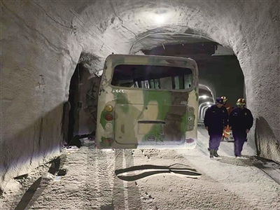 事故发生的过程并不复杂。2月23日8时15分,银漫公司外包施工单位采用非法改装车承载50人,违规经措施斜坡道向井下运送作业人员。8时20分左右,车辆刹车制动突然失灵,车辆失控,撞在距井口570米处的四车场巷道帮上,事故导致15人当场死亡,7人经救治无效后死亡。
