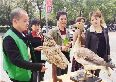 4月1日至7日为湖南省第38届“爱鸟周”,今年的主题是“关注候鸟迁徙,维护生命共同体”。昨日,我市相关部门在高新区步步高广场举办“爱鸟周”宣传活动,用展板、图册等形式,普及爱鸟护鸟知识,提高公众保护野生动植物的意识。 ■记者 胡亚华 通讯员 唐朝晖 摄