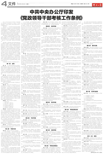 中共中央办公厅印发 《党政领导干部考核工作条例》