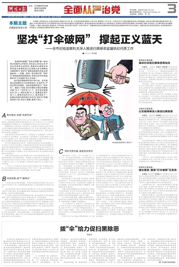 为保障人民安居乐业、社会安定有序、国家长治久安,进一步巩固党的执政基础,中共中央、国务院于2018年1月发出《关于开展扫黑除恶专项斗争的通知》,决定在全国开展扫黑除恶专项斗争。随后,中央纪委印发《关于在扫黑除恶专项斗争中强化监督执纪问责的意见》,要求全国各级纪检监察机关立足职责定位,坚持把扫黑除恶同反腐败斗争和基层“拍蝇”结合起来,作为整治群众身边腐败问题的一个重点,强化监督、铁面执纪、严肃问责,坚决冲破“关系网”、打掉“保护伞”。要督促推动地方党委和政府切实担负起扫黑除恶专项斗争主体责任。加强与政法机关的协作配合,及时排除办案干扰和阻力,协同推进扫黑除恶专项斗争深入开展。