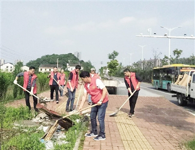 5月11日至12日,雁峰区城管环卫所组织市容监察队“衡阳群众”志愿者24人,出动车辆3台,对长达12.5 公里的南二环路和蔡伦大道开展了卫生环境大整治行动,集中清理卫生死角,共清理泥土和各类垃圾30余吨。图为志愿者正在清理人行道上的各种垃圾。 ■记者 胡亚华 摄