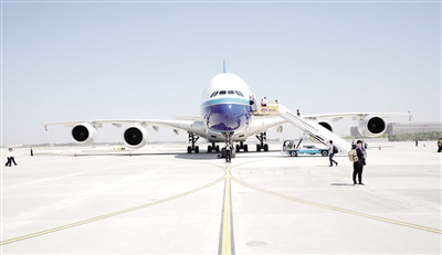 根据民航局统一部署,13日上午9时,北京大兴国际机场开展了试飞工作。试飞是大兴机场建设中的关键节点工作,是机场是否可以取得使用许可证的必备条件,也是机场竣工前最重要的一项工作。试飞工作标志着大兴机场的工作重心从基础建设阶段转向前期运营准备阶段。 参与此次试飞的航空公司为南方航空公司、东方航空公司、中国国际航空公司和厦门航空公司。四家航空公司分别拿出了自己的当家机型——“空中巨无霸”A380、“墨镜侠”A350-900、“空中皇后”B747-8、“梦想客机”B787-9,并分别选派了经验丰富的机组执行此次试飞任务。从9时起,四架飞机依次从北京首都机场飞往大兴国际机场。9时45分,4架试飞飞机全部成功落地大兴机场。 5月13日,在北京大兴国际机场,南方航空公司客机停靠在泊位。■新华社发