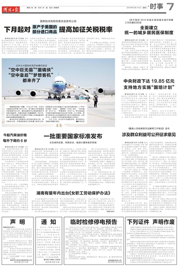 下月起对原产于美国的 部分进口商品提高加征关税税率