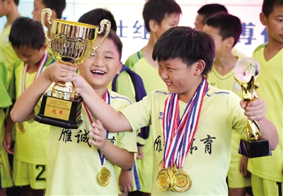7月26日下午,2019年全国青少年体育冬夏令营(湖南站)暨湖南省青少年“体育·新时代”之衡阳市小学生足球联赛(夏季)圆满落幕。来自我市47支参赛队伍、752名足球小将,在6天比赛时间里,进行了138场足球比赛。比赛分为茁壮组、青苗组、绿茵组三个组别,最终亚博俱乐部获茁壮组和青苗组冠军,祝融小学2队获绿茵组冠军。 ■ 文 张志伟 图 王翟