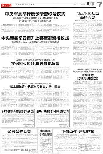 2019年08月01日 星期四 出版 返回首页 | 版面概览 | 版面导航 | 标题导航